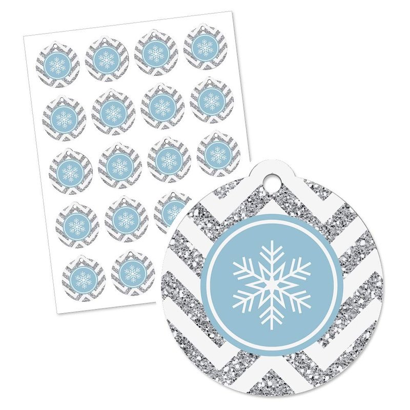 - Winter Wonderland Gift Tags INCLUDES 20 die cut holiday tags. Blue, silver and white snowflake gift tags are perfect for all your winter wedding gifts or snowflake holiday party favors.