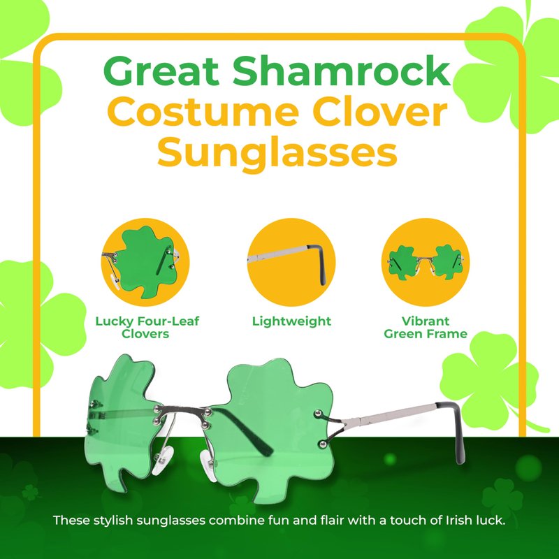 - Great Shamrock Costume Clover Sunglasses for a party or event where a leprechaun costume is desired.