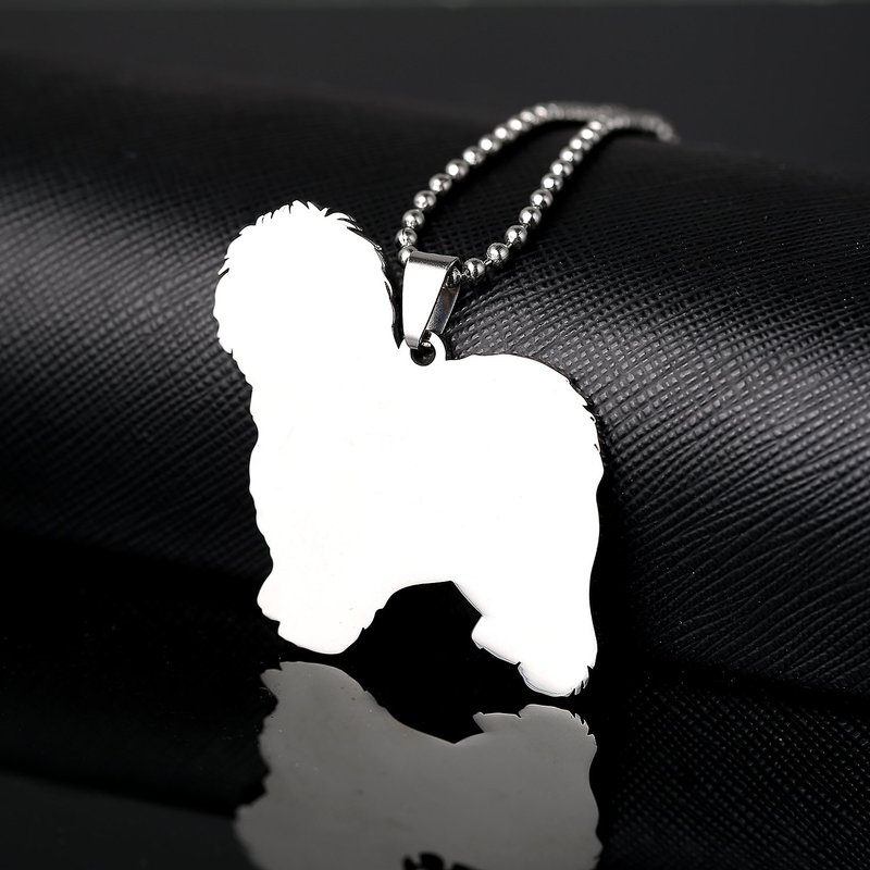 Big Stainless Steel Old English Sheepdog OES Dog Silhouette Pet Dog Tag Breed Collar Charm Pendant Necklace