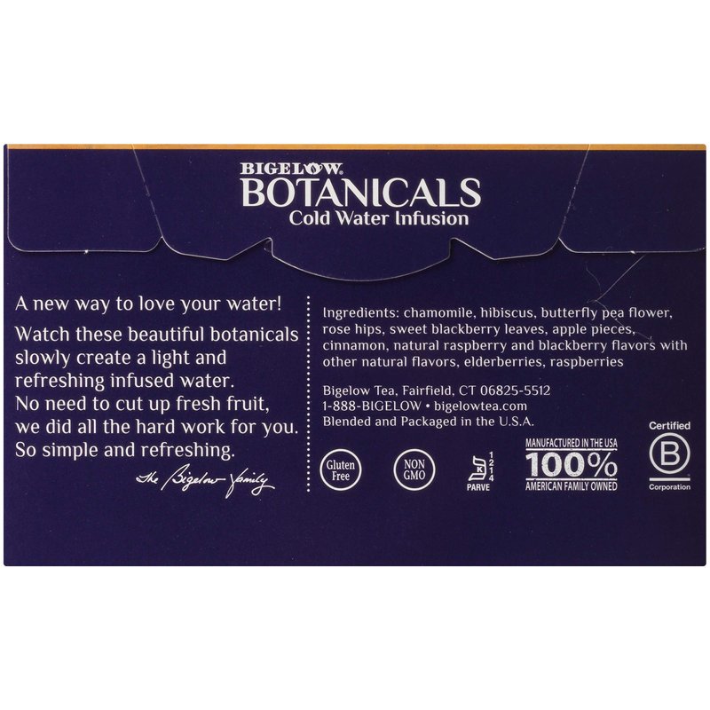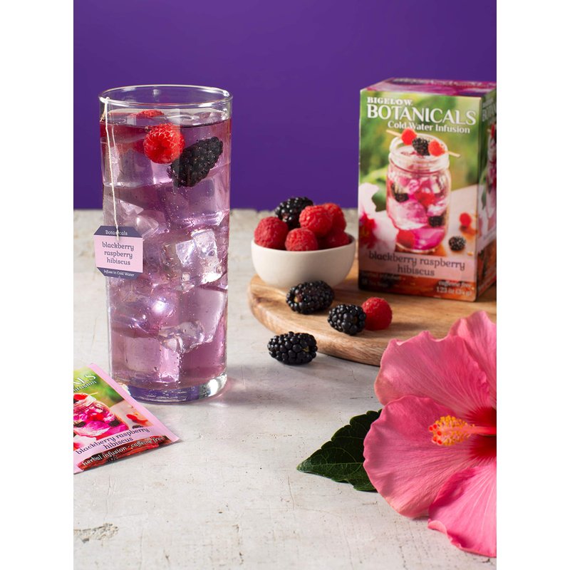 Bigelow Botanicals Cold Water Infusion Blackberry Raspberry Hibiscus Tea Bags 18 Count Box (Pack of 1), Herbal Infusion, Caffeine Free, 18 Tea Bags Total
