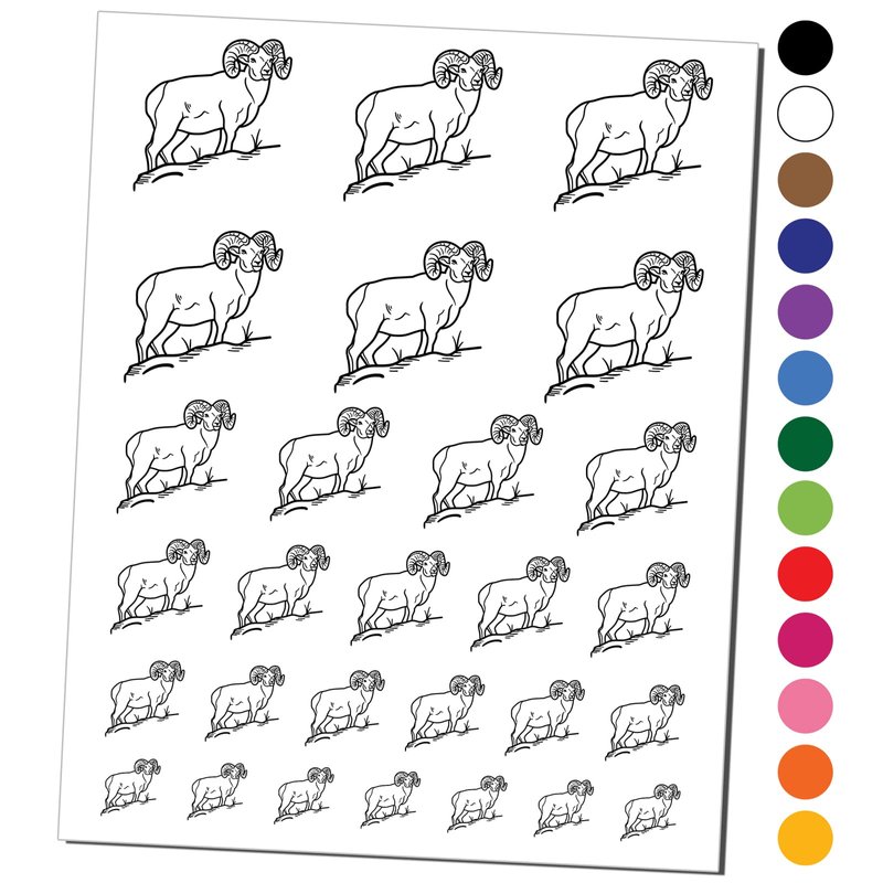 Bighorn Sheep Ram Temporary Tattoo Water Resistant Fake Body Art Set Collection - Dark Blue (One Sheet)