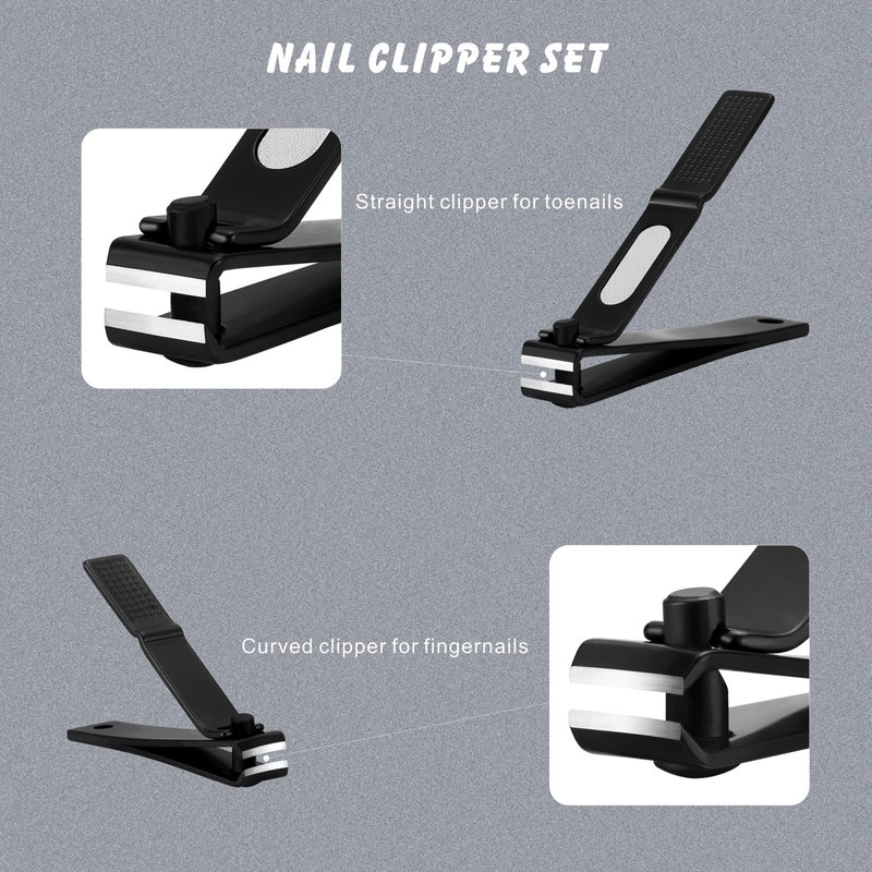 - KEEP NAILS WELL MANICURED - At home and on-the-go with this portable nail clipper set. Featuring large and small nail cutters for toenails and finernails. Keep your nails trimmed and free of spilts, cracks and hangnails.