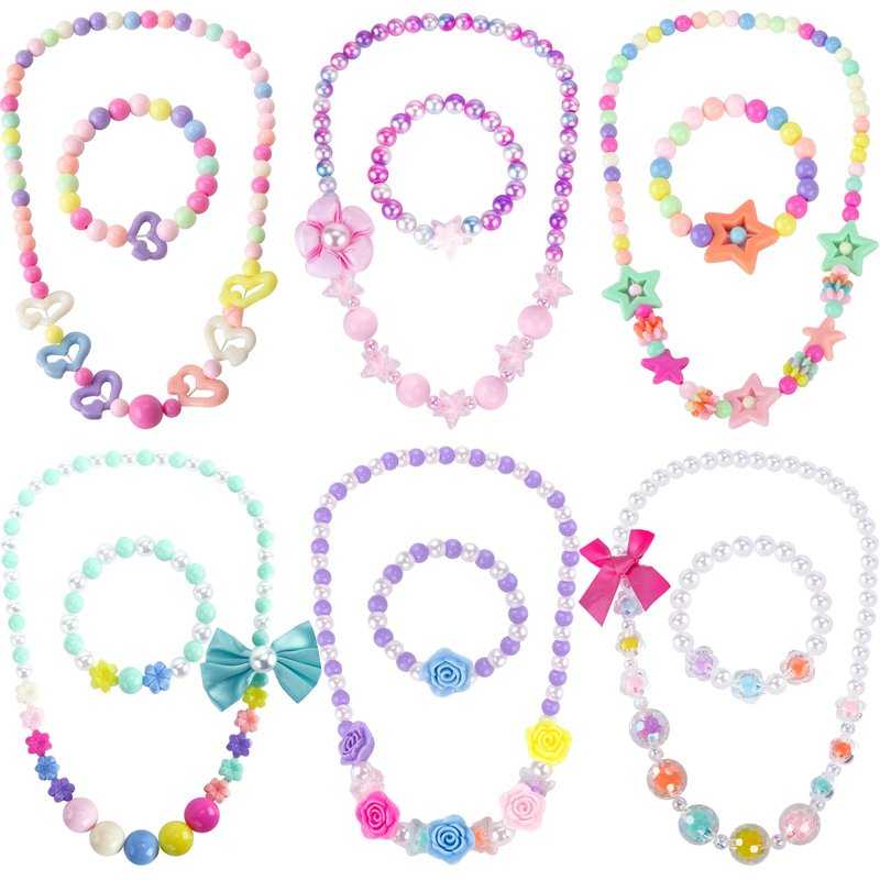 - Great Value Bundle - 6 Sets of Kids Necklace and Bracelet (Each set includes 1 necklace and 1 bracelet, for a total of 12 pieces).