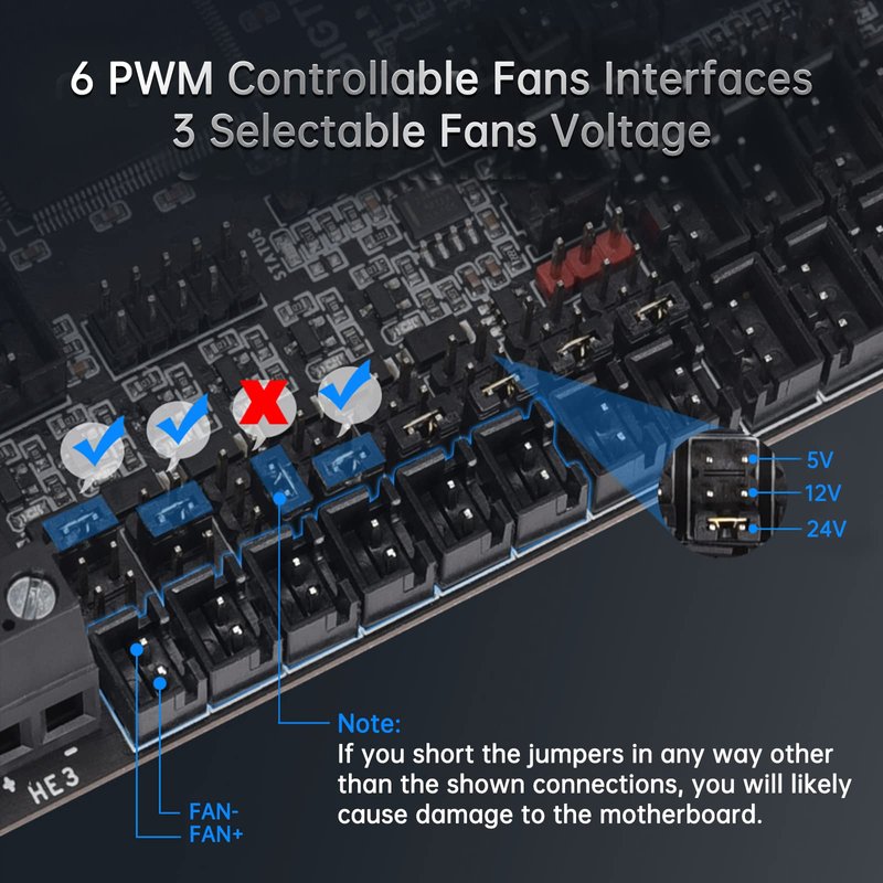 - 🐙【6 PWM Fans Plus 2 】The Octopus v1.1 Mainboard offers up to 6 controllable PWM fans and additional 2 without control with the possibility of voltage selection from 5V, 12V or 24V.The BTT Octopus also has 8 sockets for drivers, making it an ideal electronics for demanding machines.
