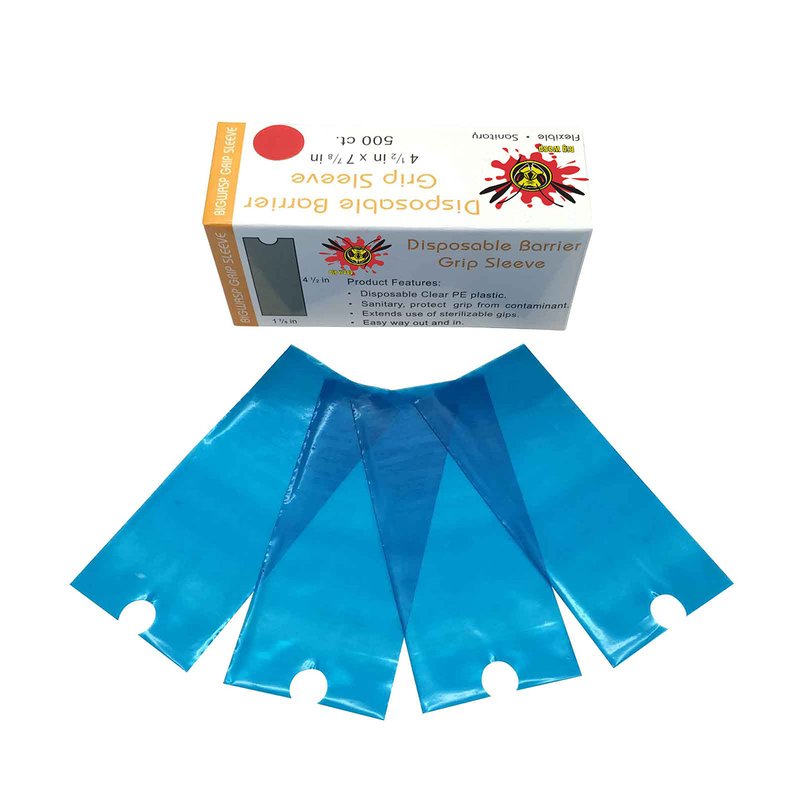 - Each sleeve has a pre-punched hole, just slide your grip into the sleeve with the needle portion coming out of the pre-punched hole to protect your tattoo grip from ink.