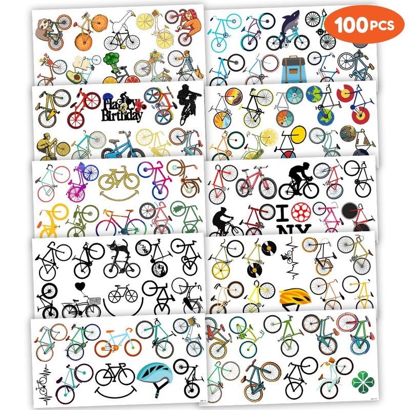Bike Temporary Tattoos 10 Sheets 100 PCS Bicycle Party Decorations Favors Supplies Cycling Theme Birthday Stickers Gifts for Boys Girls Kids Class School Prizes Carnival Christmas