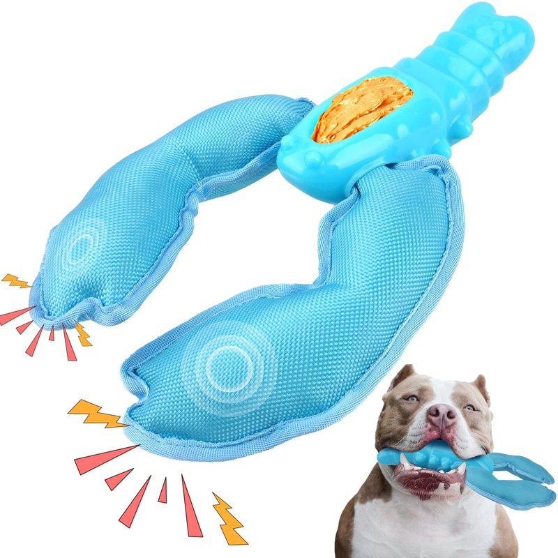 - Innovative Design with Premium Materials: Our latest lobster-shaped dog toy boasts a unique blend of materials tailored for maximum fun and durability. The claws, crafted from tough Oxford cloth, provide a sturdy grip point for even the aggressive chewers. Inside these claws, hidden BB squeakers emit delightful sounds to captivate your dog's attention. The body, made from durable nylon, ensures the toy withstands rigorous play sessions, making it a long-lasting companion.