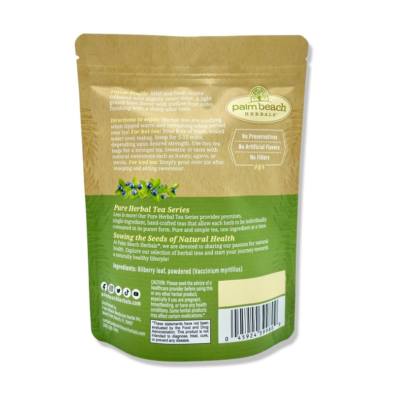 Bilberry Leaf Tea - Pure Herbal Tea Series by Palm Beach Herbals (30ct) [Packaging May Vary]