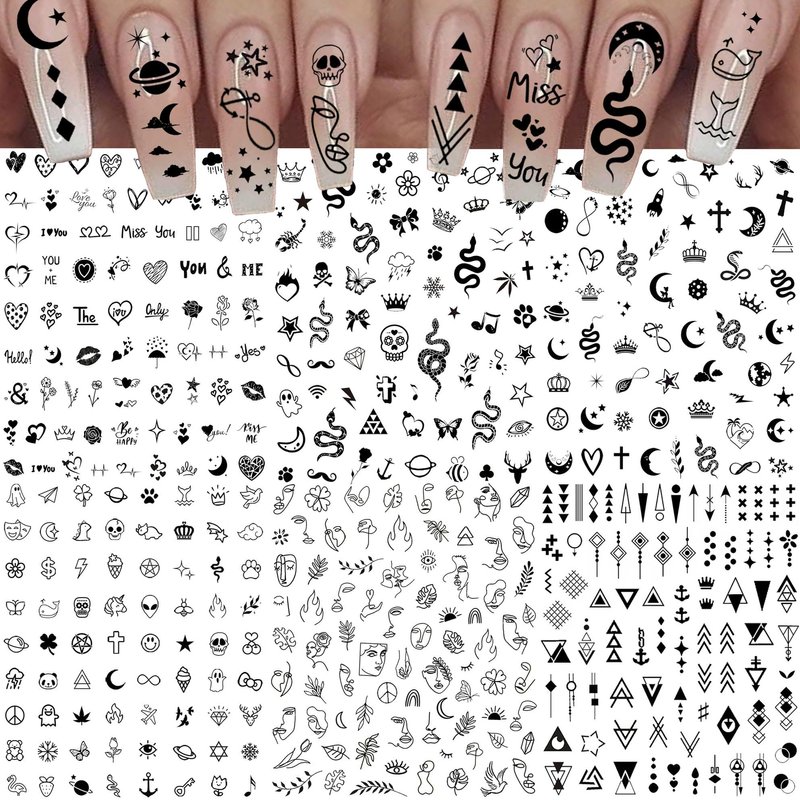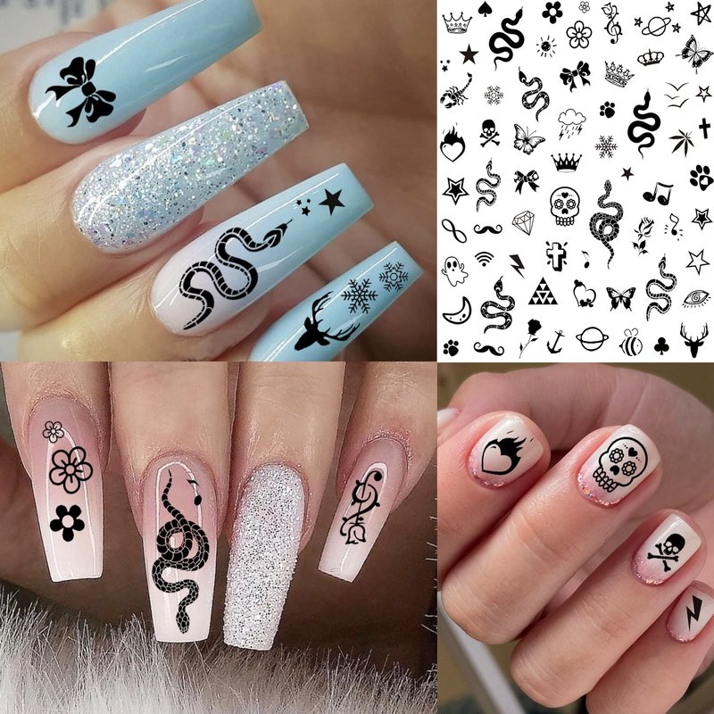 • 🐙【Delicate Design Nail Stickers For Nail Art】🐠 A Pack Contains 6 Sheets Size 4.1x3.1 Inches Exquisite Gel Nail Art Stickers & Decals With Charming Patterns: Unique Summer Black Abstract Women Lady Face Nail Decals For Nail Art, Small Little Tiny Funny Cute Animals Sun Crescent Moon Planet Cross Infinity Skull Ghost Crown Leaf Leaves Floral Flower Snake Unicorn Dinosaur Nail Sticker For Girls Kids, Fashion Geometry Geometric Triangle Diamond Arrow Love Heart Star Nail Sticker For Women.