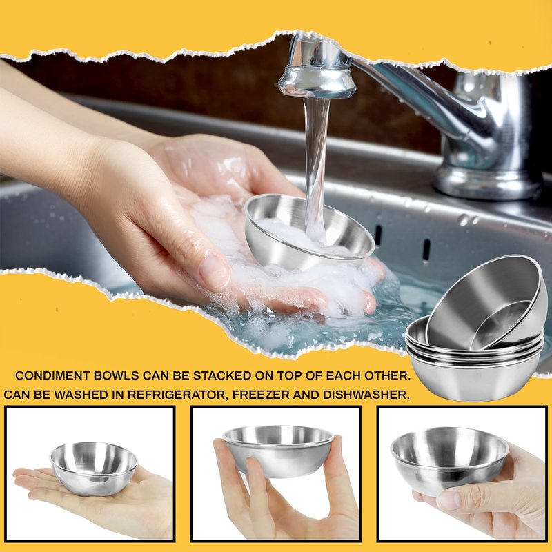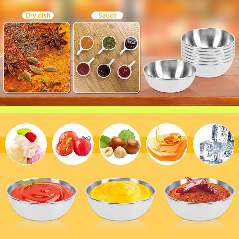 - Material: Our sauce dishes are made of high quality stainless steel, which are safe, sturdy and could be used for a long time. It could with stand to hot, cold, acidic mixture