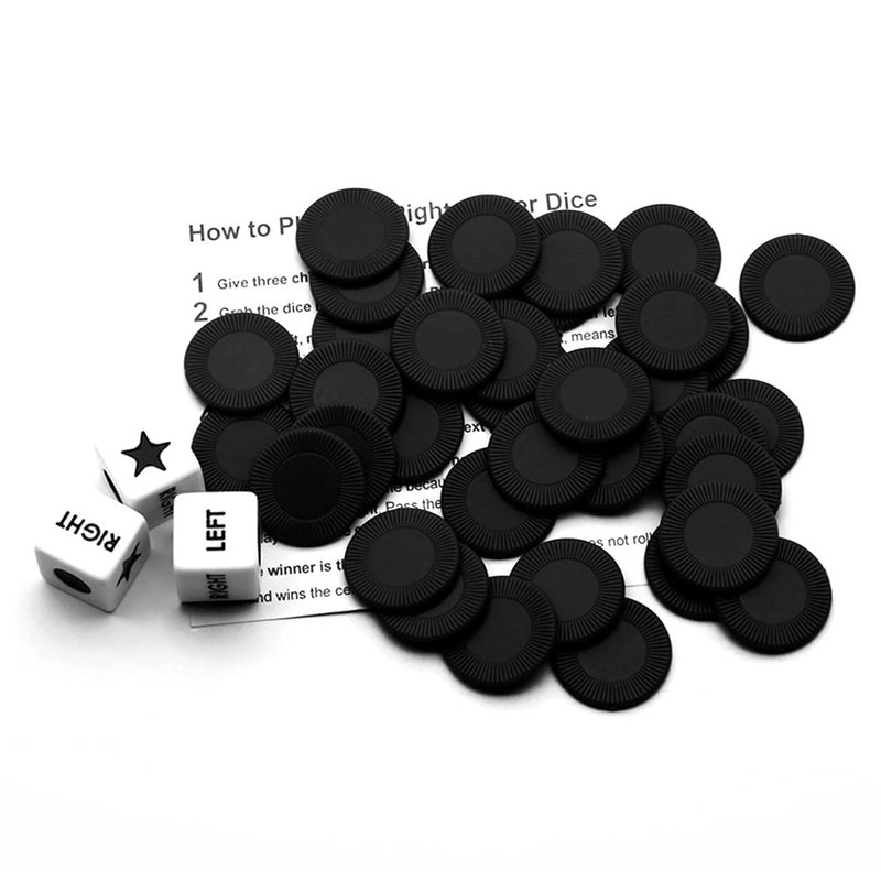 Bilywey Left Right Center Dice Game Set with 3 Dices + 36 Black Chips (Black)