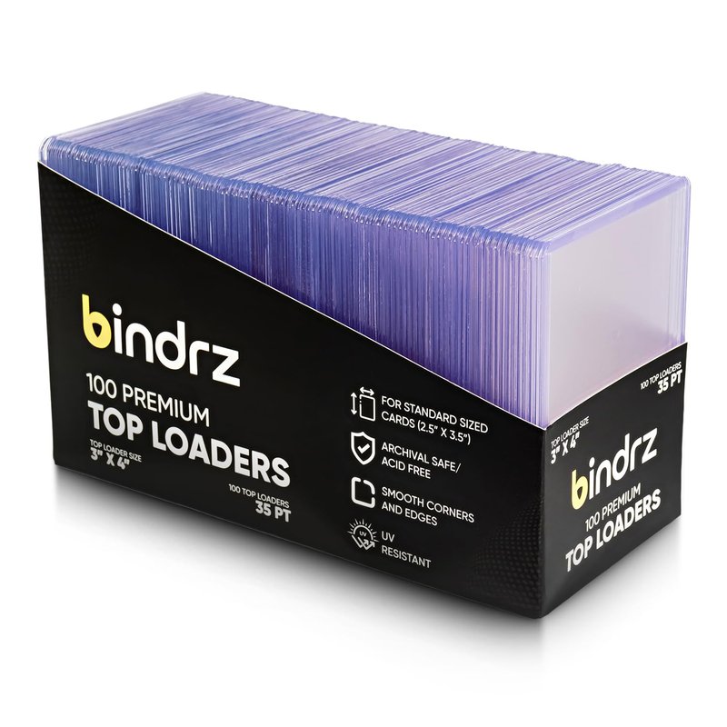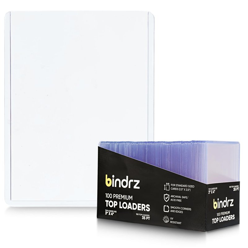 bindrz 100 Top Loaders Card Protector - 3” x 4” 35PT Rigid Toploaders - Archival Safe Hard Plastic Holder Toploaders for Cards for CCG TCG MTG and Sports Cards (100)