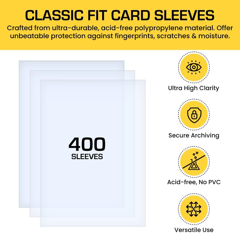 - PREMIUM PROTECTION - Safeguard your cherished trading card collection with our top-of-the-line sleeves. Crafted from ultra-durable, acid-free polypropylene material, these sleeves offer unbeatable protection against fingerprints, scratches, and moisture.