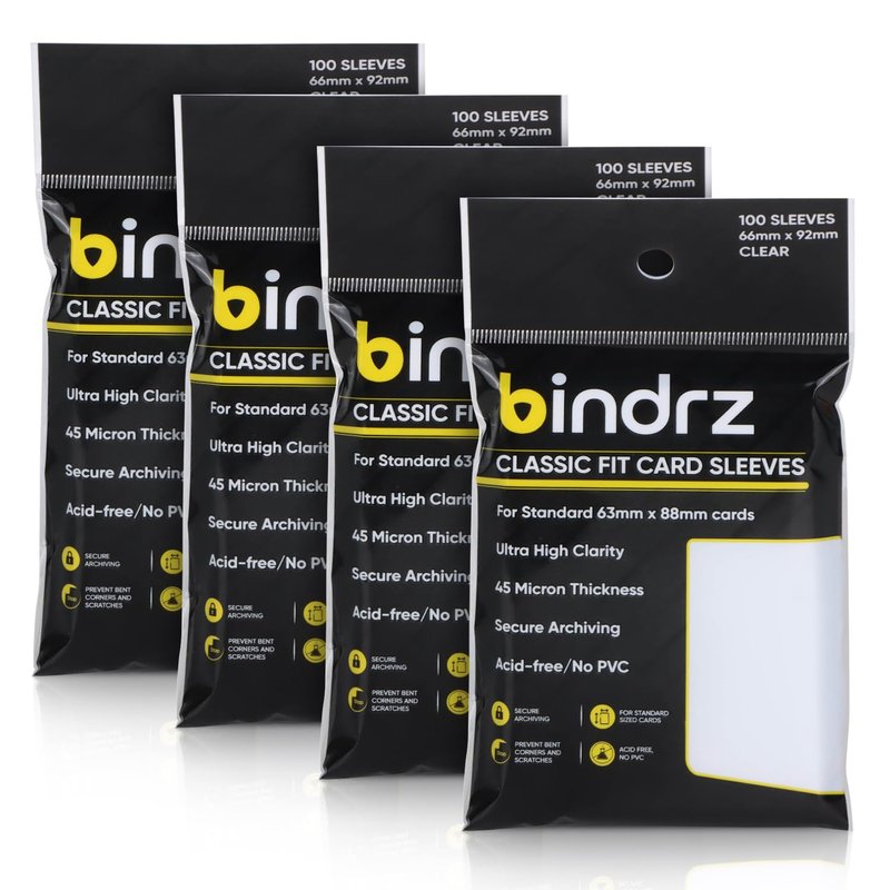 bindrz 400 Trading Card Sleeves - 45 Micron Thick - 66 x 92mm - High Clarity Classic Penny Sleeves for TCG MTG and Sports Cards (400 Sleeves)