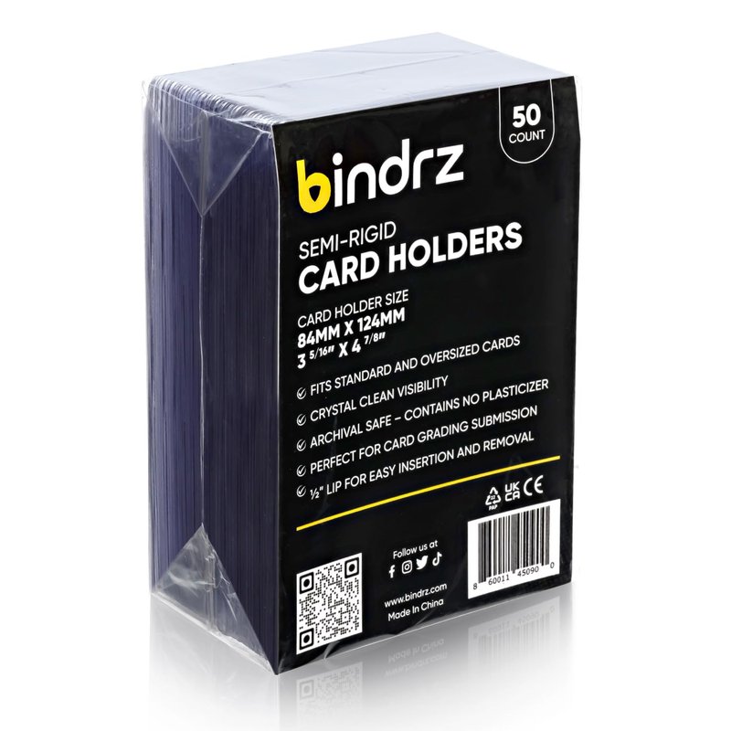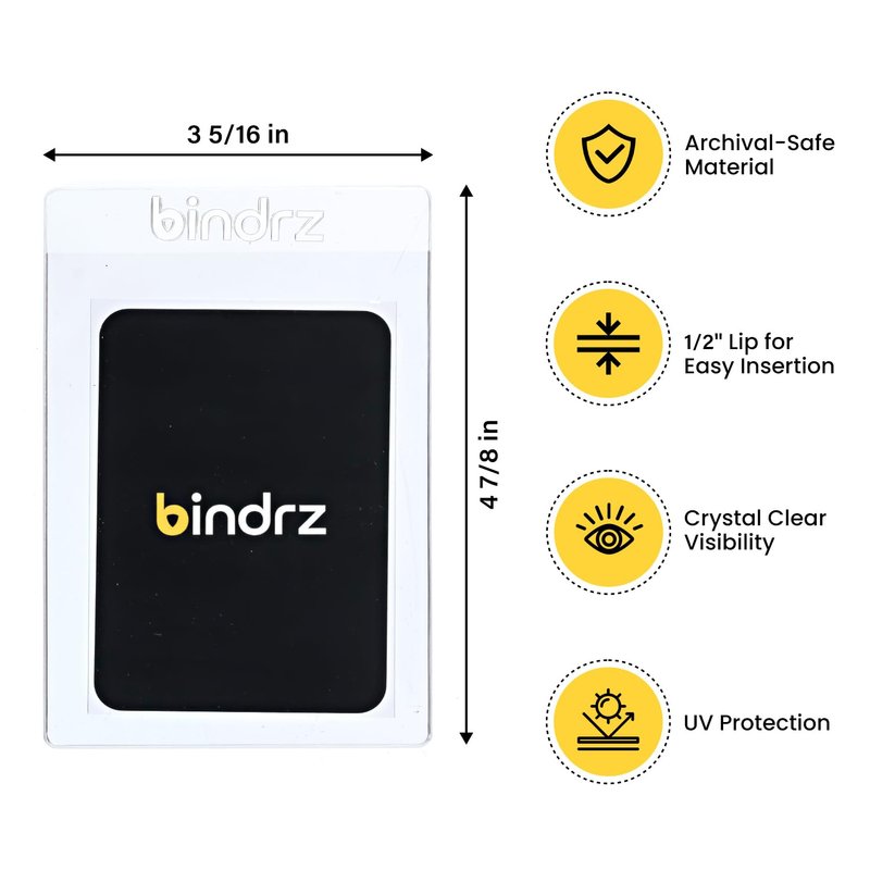 bindrz 50 Semi Rigid Card Holder - 3 5/16” x 4 7/8” with a 1/2” Lip - PSA, BGS, SGC & CSG Grading Submission Sleeves Holders for CCG TCG MTG and Sports Cards (50)