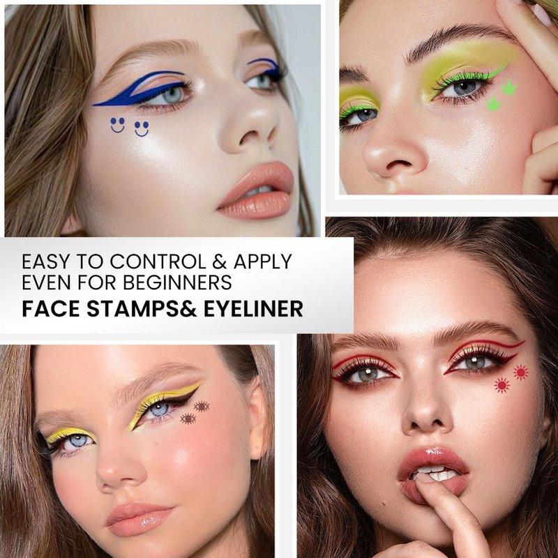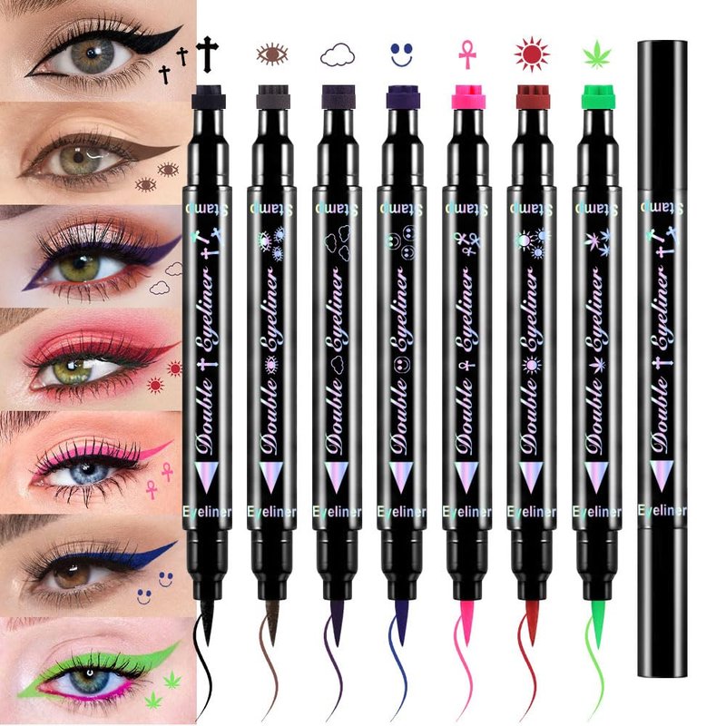 BINGBRUSH 7Pcs/set Double-sided Liquid Stamp Eyeliner Pen, Face Stamps Makeup Extremely Black Waterproof Slim Gel Felt Tip High Black Pigment Liquid Eyeliner & Seal (7 pcs set02#)
