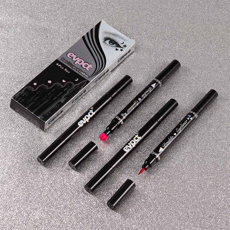 BINGBRUSH Double-sided Liquid Stamp Eyeliner Pen, Face Stamps Makeup Extremely Black Waterproof Slim Gel Felt Tip High Black Pigment Liquid Eyeliner & Seal (Colorful)