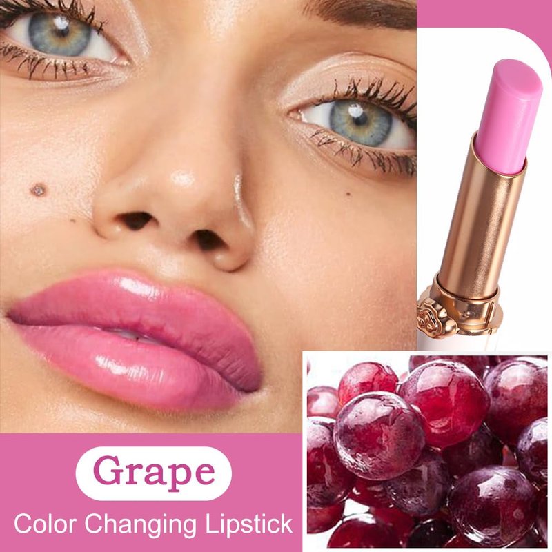 BINGBRUSH Grape Color Changing Lipstick Queen,Moisturizer Long Lasting Lip Care Lip Balm Magic Lip Gloss Lip Tint Stain Glossly Makeup Lipstick Set for Women (1pc Grape)
