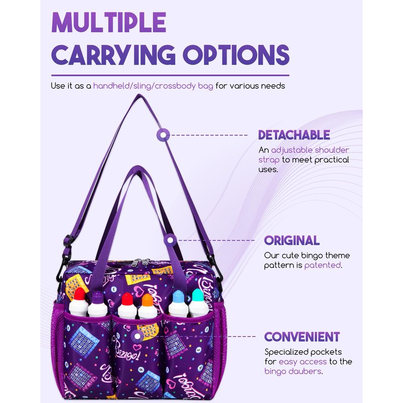 - PLENTY OF ROOM -- This bag is 10.6"(L) x 5.1"(W) x 8.9"(H) and weighs only 0.68 lbs. It's spacious enough for all bingo accessories and personal items.