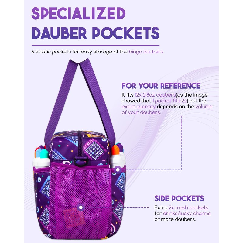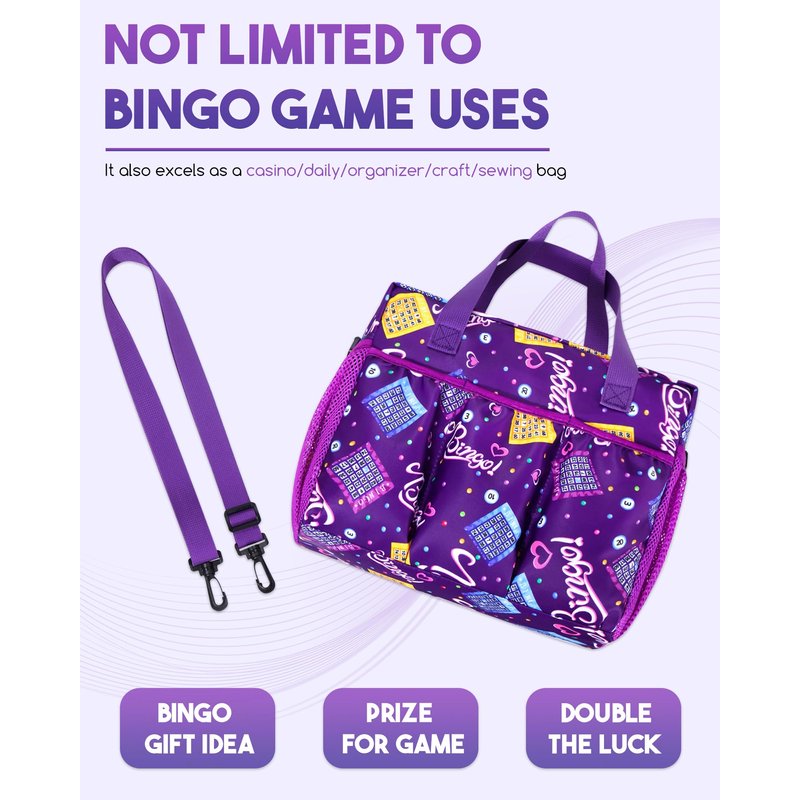 Bingo Bag with Pockets for Bingo Daubers Dabbers Dobbers Purple Bingo Bags for Bingo Stuff Supplies Bingo Night Accessories for Women Lady Bingo Game Prizes for Bingo Lovers Players Juego de Bingo Bag