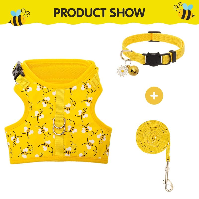 BINGPET Cat Harness with Leash Escape Proof - Fashionable Mesh Cat Dog Walking Harness Leads, Adjustable for Kitties Puppies Small Animals