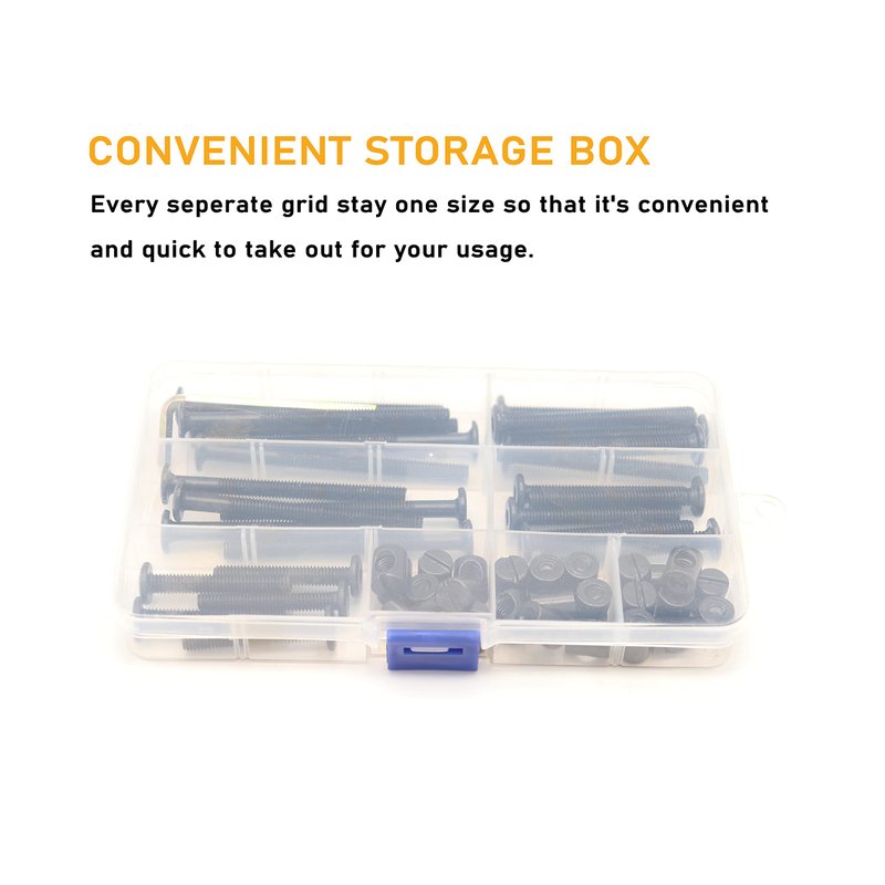 - - Package: 25pcs * M6 Screws, 25pcs M6 Slotted Barrel Nuts, one Hex key, one storage box;