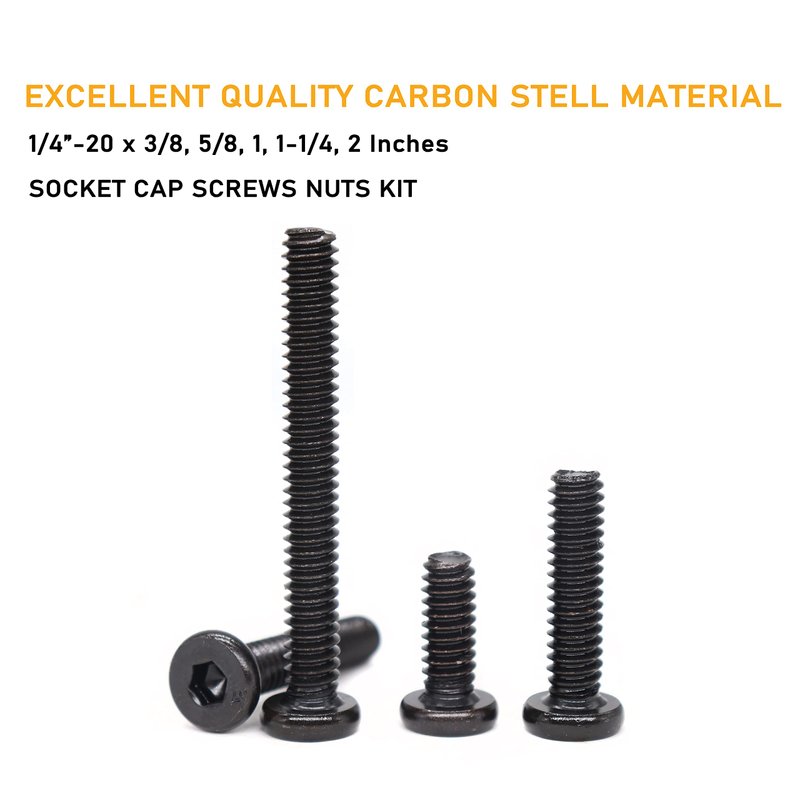 - [✔] Name: Black 1/4-20 Hex Socket Cap Bolts and 1/4-20 Black Hex Nuts Kit;