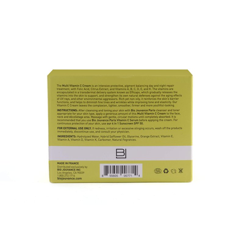 BIO JOUVANCE PARIS - Multi Vitamin C Cream 1oz / 30ml - All Skin Types | Anti Aging | Skin Brightening | Highly Concentrated Formula | Daily Facial Skin Care Treatment Regimen | Made in France