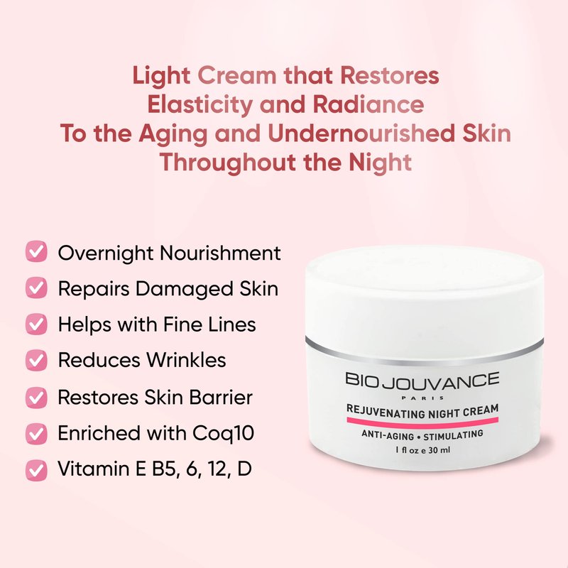 BIO JOUVANCE PARIS - Rejuvenating Night Cream 1oz / 30ml - For Mature/Sun Damaged Skin | Anti Aging Face Moisturizer Hydrating Lotion | Daily Facial Skin Care Treatment Regimen | Made in France