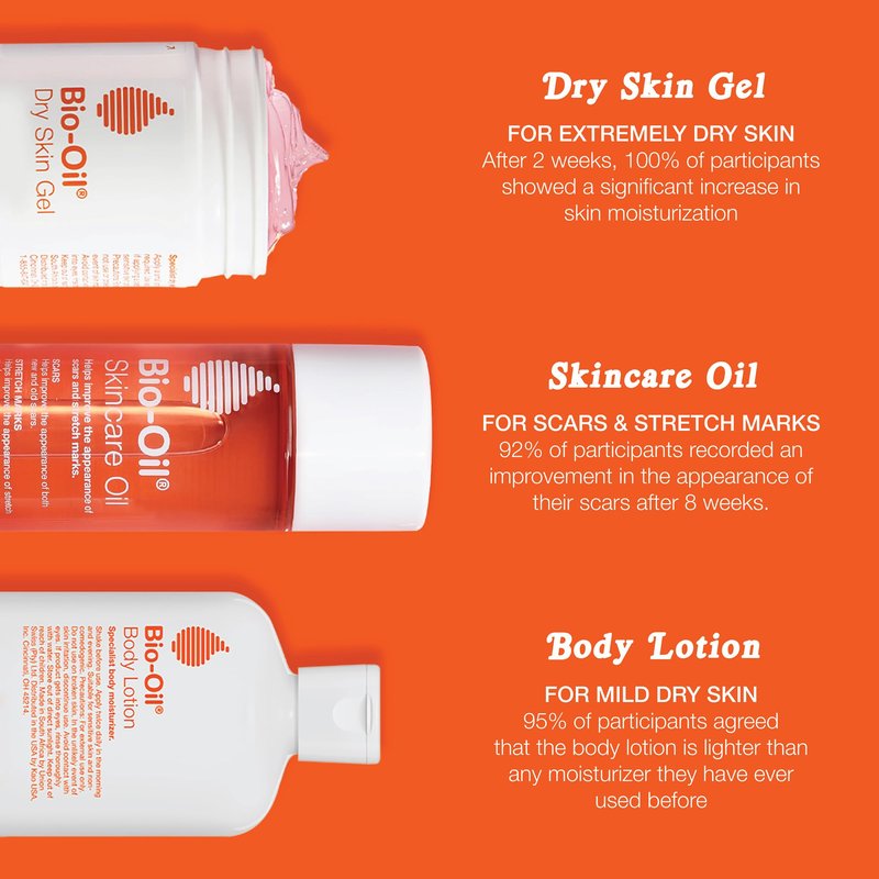 - SKINCARE GIFT SET - Contains Travel Size Bio-Oil Skin Care Oil, Bio-Oil Dry Skin Gel, and Bio-Oil Body Lotion