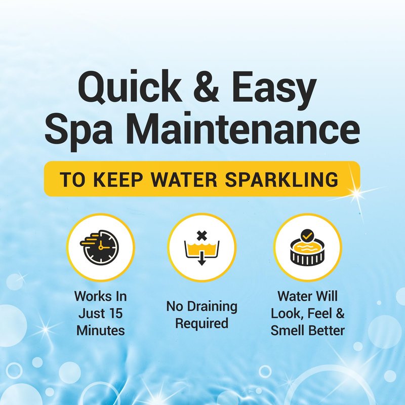 - 3-IN-1 WATER CARE: Our weekly maintenance treatment includes a combination of hot tub cleaner, conditioner, and clarifier. Specially formulated to deliver sparkling clean and crystal clear water and ensure a soft and silky water feel for your next soak!