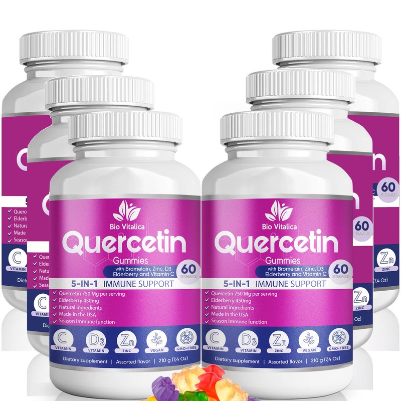BIO VITALICA (6 Pack) Quercetin Gummies by BioVitalica - Quercetin with Bromelain Vitamin C and Zinc & Elderberry + Vitamin D3-5 in 1 Immune Support - Zinc Quercetin 750 mg for Kids and Adults