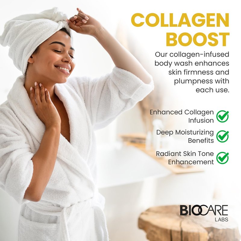 Biocare Vitamin C and Collagen Body Wash: Ultimate Brightening & Toning Solution, Ideal for Men & Women - Enhances Skin & Hydrates, Suitable All Skin Types, Sulfate-Free 16.5 oz