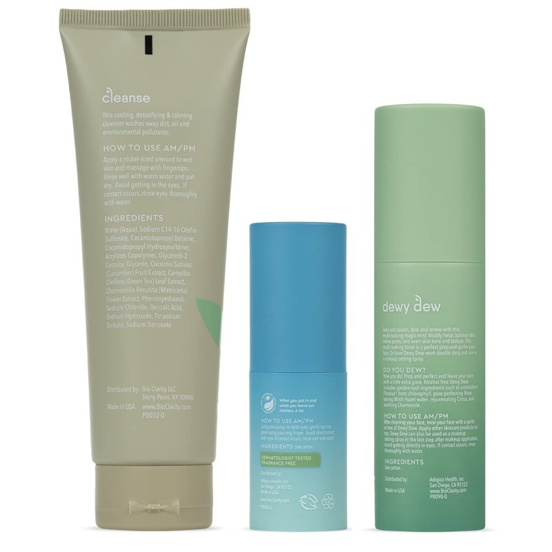 BioClarity Vegan Face Wash, Toner & Eye Gel Set (3 Piece) | Contains Cleanse, Dewy Dew & Eye Will Chill | Wake Up Refreshed | Effective & Gentle Plant-Based Formulas For All Skin Types