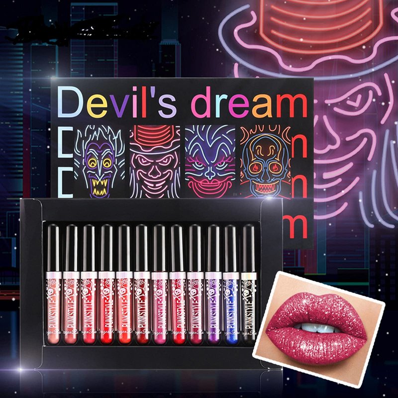 - Birthday Set/Nice Gift: Total of 12 Colors Glitter Lip Kit, Skull Face-Lipstick set designed by Skull Face, Comes with the Unique package , perfect as a gift sends to Lover, Family and Friends when Halloween, Christmas, Valentine's Day, Birthday and other Festival!