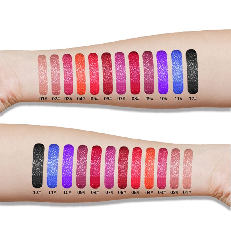 - Long lasting and Waterproof: 12 Colors Glitter Lipstick, full-size lip gloss of the most popular colors. Charming matte, long-lasting and waterproof, Not stick cup, do not fade.