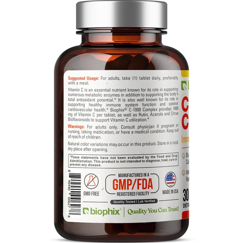 biophix Vitamin C-1000 mg 30 Tablets Complex - Vegan with Calcium Citrus Bioflavonoids Acerola Rutin - Supports Immune Health