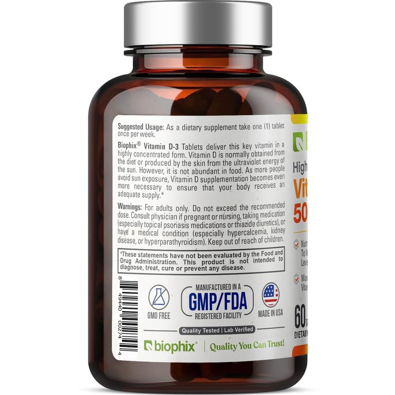 biophix Vitamin D-3 50000 IU 60 Tablets - High-Potency Supports Strong Bones Immune Health and K2
