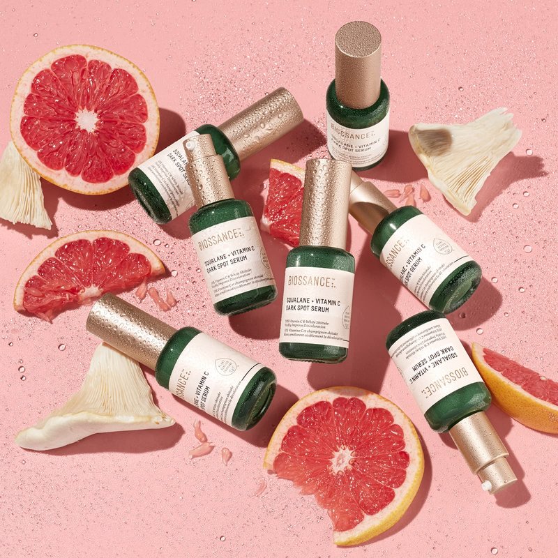 - Biossance Squalane + Vitamin C Dark Spot Serum. A targeted 10% vitamin C treatment, this serum visibly brightens instantly while working over time to dissolve pigmentation and prevent new discoloration.