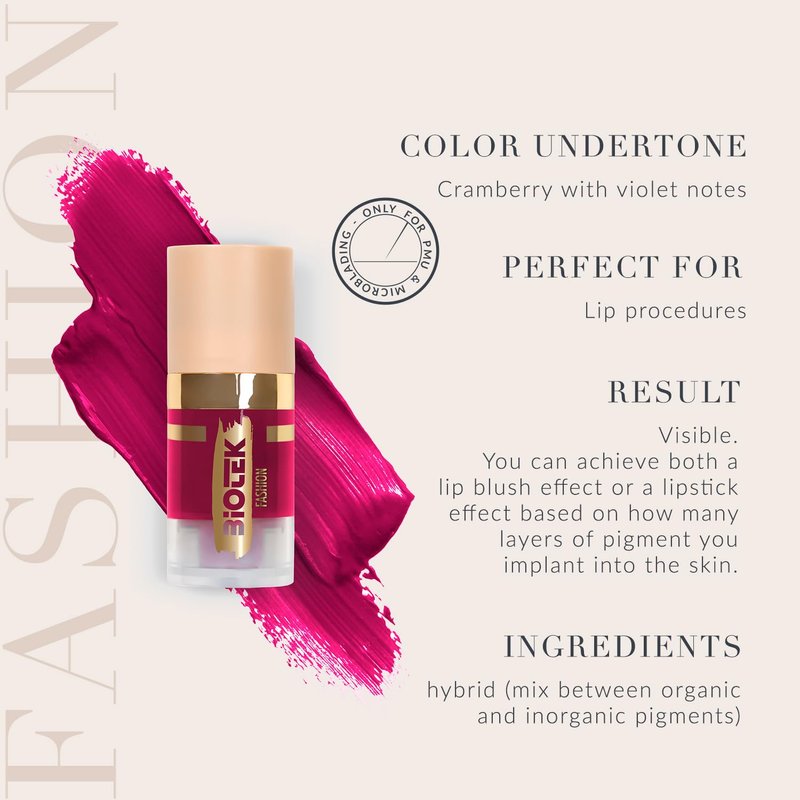 - Biotek's Fashion lip pigment is suitable for both permanent makeup and microblading.