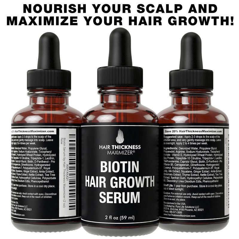 - Most hair growth oils and serums use harsh, unnatural chemicals. Hair Thickness Maximizer focuses on Biotin along with high quality ingredients that work to nourish, revitalize and protect your hair. See and Feel the difference!