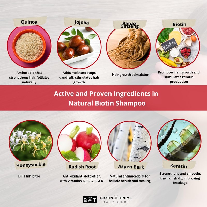 - Natural DHT Blocker: Our Biotin Xtreme Shampoo for men and women features a powerful blend of natural DHT blockers including Honeysuckle and Panax Ginseng, which help reduce the effects of DHT on hair follicles, promoting healthier, thicker hair.