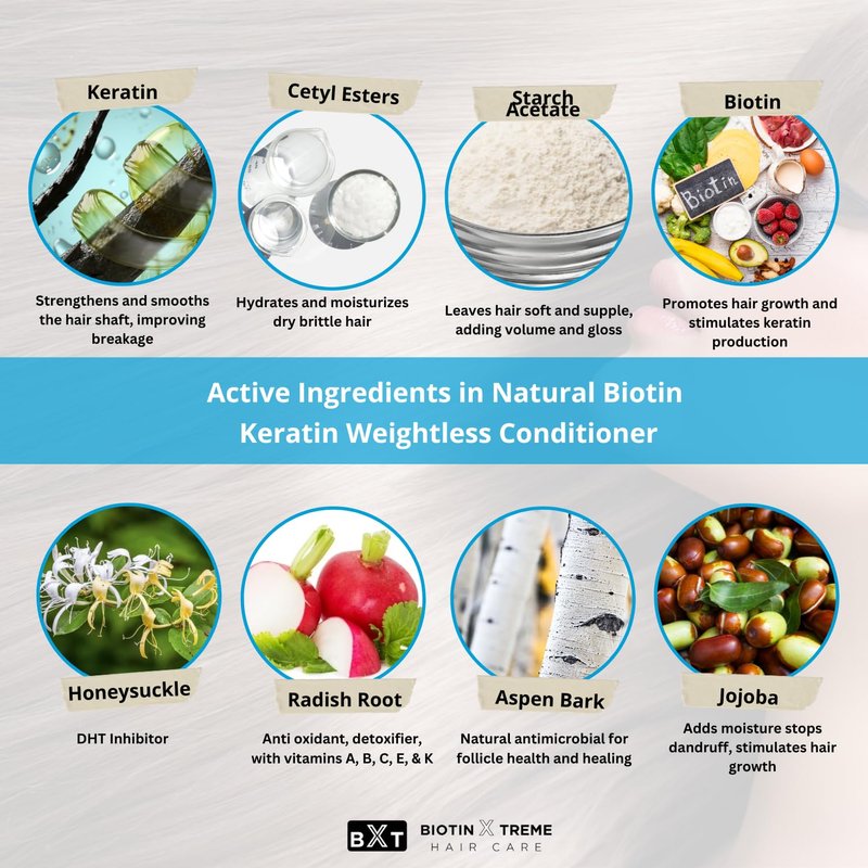 Biotin X Treme Natural Hair Growth Biotin and Keratin Conditioner for Thinning Hair - Strengthens, Smooths, and DHT Blocker - Color-Safe, Sulfate, Paraben, and Gluten-Free for Fine and Damaged Hair