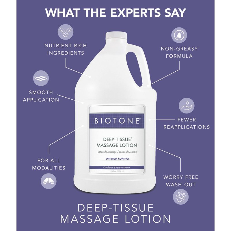 BIOTONE Deep Tissue Massage Lotion, Rich Texture, Lasting Glide, Use for Swedish, Trigger Point, Sports, and Deep Tissue, Smooth Application, Unscented