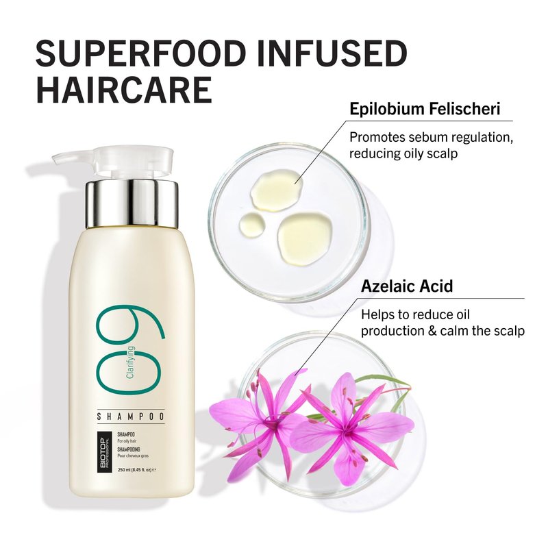 - Clarify & Cleanse - Calm and soothe the scalp with Biotop Professional's gentle and clarifying shampoo. Enriched with ingredients to help with sebum control and transforming your oily hair to look more soft, moisturized and voluminous.