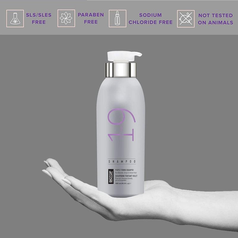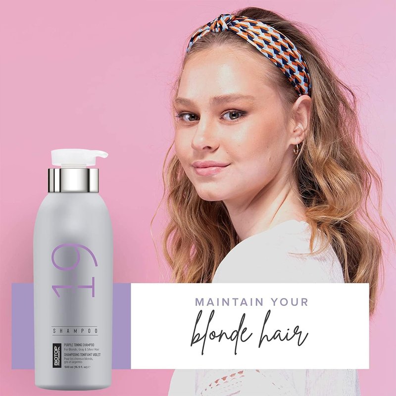 Biotop Professional 19 Pro Silver Shampoo - Purple Shampoo to Neutralize Yellow and Brassy Tones - Made with Sunflower Oil and Vitamin E - For Blonde or Bleached Hair - 16.9 oz