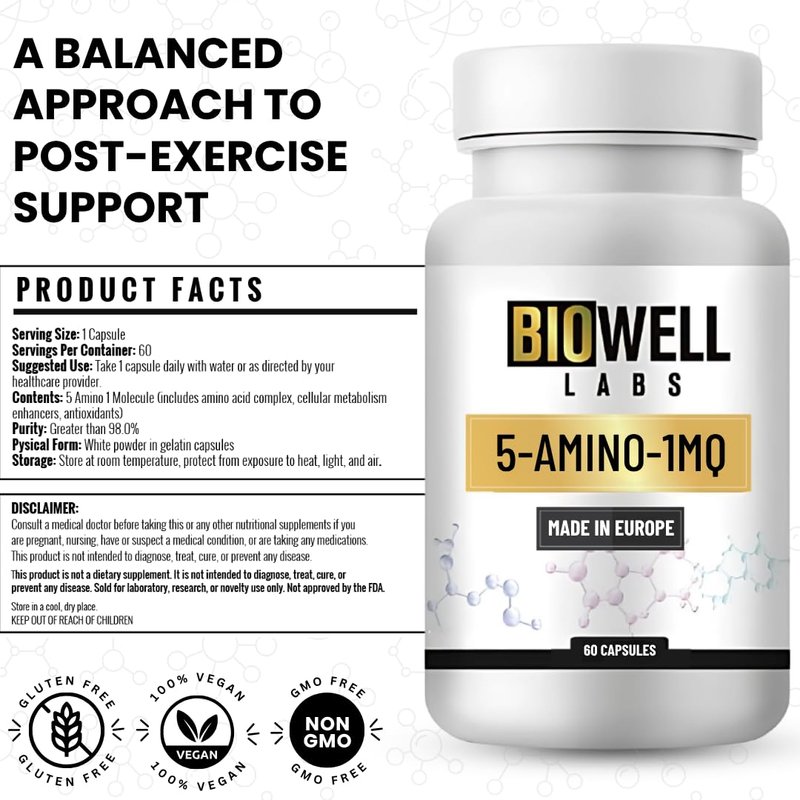 BioWell Labs 5A-1-Molecule (5 Amino 1mq) 50mg – Pure NNMT Inhibitor Peptide Supplement – High-Purity 60 Capsules – Supports Cellular Metabolism