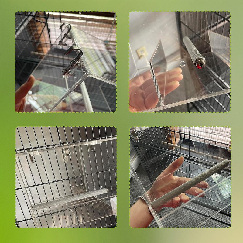 - 【DURABLE ACRYLIC & WELL MADE】: Bird feeder for cage no mess made with thick transparent acrylic, clear cage bird feeder make it easier for birds to adapt to. The siding inside for one side to hold food, and the other side to stand and eat. The molar stainless steel bird perch for steady grasp and durable use. Transparent materials allow you to observe birds easy and comfortably. Well made edge is smooth and won't heart hands or birds.