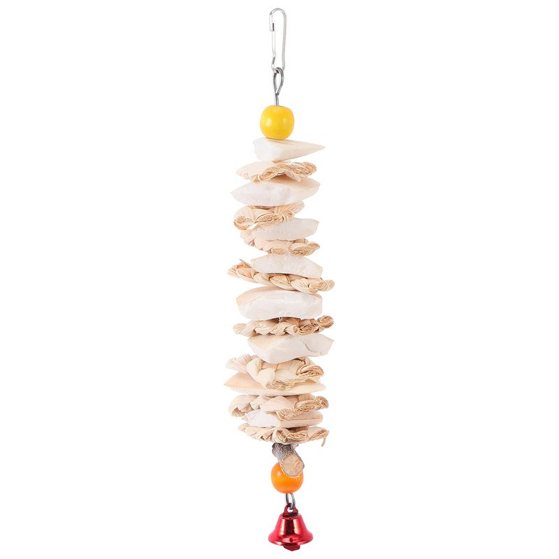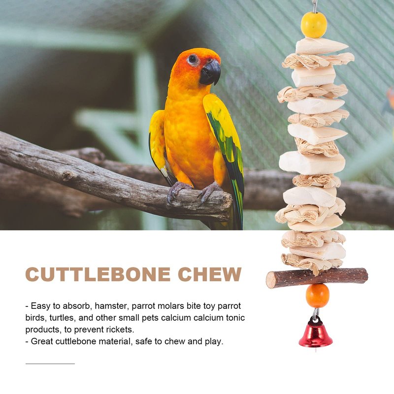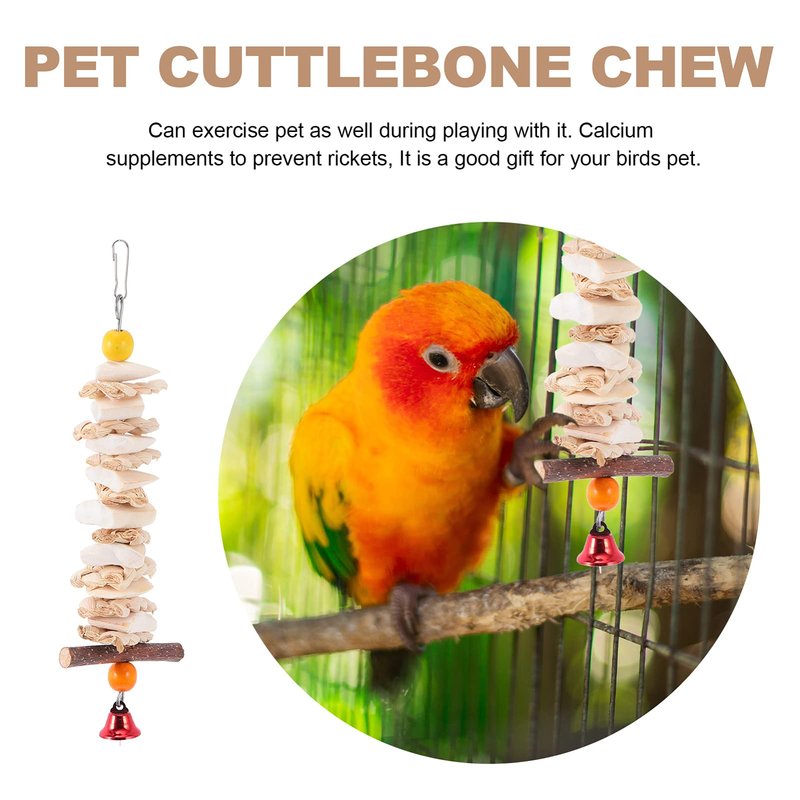 Bird Cuttlebone Cuttlefish Bones with Bell Beak Stone Parrot Beak Desalting Toy Cuddle Bone Pet Training Chew Molar Toy Hanging 25CM