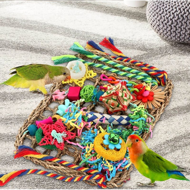 - BE A HAPPY BIRDS:YIXUND bird seagrass foraging wall will give your bird friends a happy playtime.When you sent this lovely bird toys for parakeets to your friends' house,your bird friends will crazy for it,biting off papers for great fun,swinging and climbing on seagrass net,chewing this or that happily.